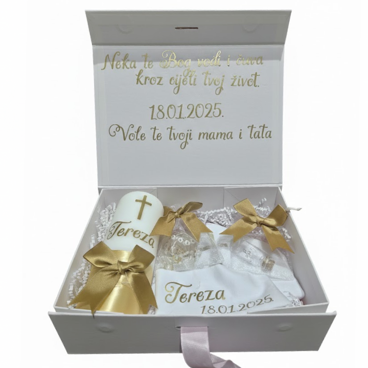 Poklon set za krštenje | Bijela kutija i zlatni tisak | Standard